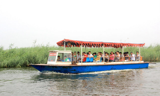 13:00—13:30乘畫(huà)舫或機(jī)動(dòng)船(依照人數(shù)安排.含游船費(fèi)用),進(jìn)入白洋淀(含入淀費(fèi)40元/人)