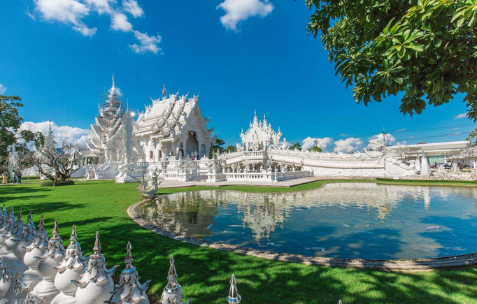 早餐后,乘車前往清萊,途中在溫泉休息站稍作停留,享受天然的溫泉泡腳,里面大大小小的溫泉泳池和溫泉浴室,在當(dāng)?shù)胤浅S忻?,大家成三結(jié)對的泡泡腳,說說笑笑。參觀【白廟】,又稱(龍昆寺),此座寺廟是由泰國有名的藝術(shù)家大師查倫猜所建,是結(jié)合傳統(tǒng)與現(xiàn)代創(chuàng)作的藝術(shù)瑰寶,獨(dú)具泰國風(fēng)格的白色的建筑物倘徉在蔚藍(lán)的天空,堪稱一件精美的藝術(shù)作品。隨后前往黑廟,又稱為黑屋,是泰國藝術(shù)家設(shè)計(jì) ThawanDuchanee 建造的私人博物館。黑廟并不是真的廟,只是因?yàn)檎w色調(diào)是偏黑色,再加上清萊著名的白廟,才被人稱為黑廟。