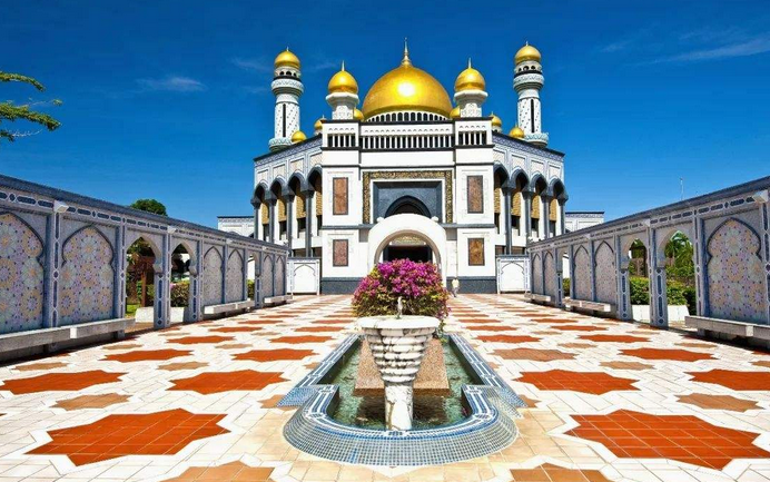 外觀【杰米清真寺】 (Jame ’s Asr Hassanil Bolkiah Mosque)。在當(dāng)?shù)乇环Q為“國王的清寺”,是文萊第 29 任—現(xiàn)任蘇丹于上世紀(jì) 90 年代建造的。其外觀圓塔由 29 個(gè)大小不一的 24K 純金打造的圓型金頂組成,黃金厚度達(dá) 2 公分。