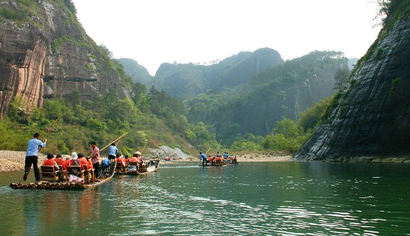 溫馨提示  九曲溪水流緩慢,不會濕鞋,但一定注意安全,聽從筏工安排,漂流時間由竹筏公司電腦統(tǒng)一調(diào)度安排,旅行社無權(quán)調(diào)整,會根據(jù)實際情況調(diào)整行程順序,但保證不減少景點。