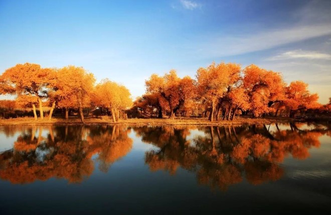 01  南疆胡楊  中國90%的原始胡楊在新疆南疆。輪臺塔里木河畔的胡楊林公園10月-11月上旬,色彩濃郁,一片金黃