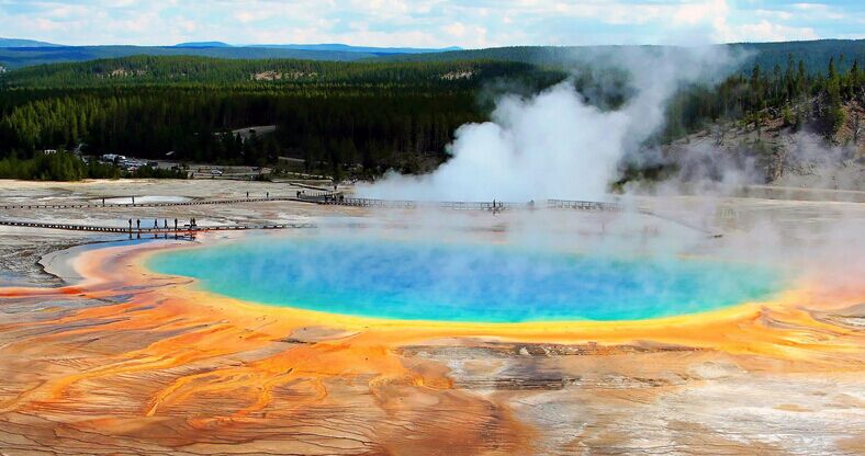 在黃石公園內(nèi)的第一站,我們將先來(lái)到諾里斯(Norris)景區(qū)(約30分鐘)這里是黃石公園泉水**熱、**活躍、**多變的地區(qū)之一。清晨涼爽的空氣拂面,讓人為之精神振奮。晨霧與地?zé)針?gòu)成一幅氤氳的水霧畫(huà),遠(yuǎn)遠(yuǎn)近近的薄霧圍繞身邊,五彩光暈幻化其中,一路走來(lái)幾乎不會(huì)有什么人,很有些走入仙境的感覺(jué)。接著前往黃石公園內(nèi)**精華的部分【峽谷區(qū)】(Canyon Country)(約1小時(shí)),【黃石峽谷】(Yellowstone Canyon)與【黃石瀑布】(Yellowstone Falls)。在峽谷內(nèi)健行,眼前的黃石河陡然變急,沖開(kāi)四濺的水花,形成兩道壯麗的瀑布,轟鳴著泄入峽谷。兩道瀑布沖刷著峽谷巖石,可如油彩般的色彩不會(huì)被沖刷褪色,反而在朝霞下更見(jiàn)鮮艷。峽谷區(qū)【Artist Point瞭望臺(tái)】,風(fēng)景優(yōu)美的瞭望臺(tái)和交織的黃石峽谷邊緣山路成為峽谷區(qū)(Canyon Country)的主要亮點(diǎn)。離開(kāi)峽谷區(qū),去觀賞的【泥火山】(Mud Volcano)(約20分鐘),又是另一番景象,平靜時(shí)如一潭死水,噴發(fā)時(shí)則泥漿涌動(dòng),酸霧密布。這里是黃石硫磺濃度**高的區(qū)域,噴發(fā)的洞窟旁邊,形成了一個(gè)個(gè)硫酸湖,湖邊結(jié)著許多黃色的硫磺結(jié)晶。游覽【豆?jié){池】(Fountain Paint Pot)(約20分鐘),以及依顏色和水溫而排列的【氣孔噴泉】(AFumarole)(約15分鐘),接著我們將去到【中途景區(qū)】(Midway)(約30分鐘),游覽大棱鏡泉(Grand Prismatic Spring),【七彩池】(Grand Prismatic Spring)是黃石公園的標(biāo)志性景點(diǎn),也是眾多彩池中**大的一個(gè)。開(kāi)闊的水面因不同的溫度和菌種,形成極其恣意艷麗的顏色,仿佛是上帝的調(diào)色盤(pán)一般。而【火洞河】(Firehole River)則呈現(xiàn)出黃黑的顏色,是因?yàn)樗暮铀泻写罅苛蛭镔|(zhì)。**后前往**有名的是老忠實(shí)泉(Old Faithful)間歇泉(約1小時(shí)),間歇泉區(qū)**好的表現(xiàn)了公園的地?zé)崽卣?,分為上間歇泉盆地、中間歇泉盆地、下間歇泉盆地。