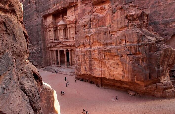 前往游覽佩特拉古城。佩特拉古城又稱玫瑰古城,特殊的地貌使這里呈現(xiàn)出絕美的顏色,是約旦**負(fù)盛名的古跡區(qū)。2007年7月8日被評(píng)選為世界新七大奇跡,也是世界文化遺產(chǎn)之一。入口是一條長(zhǎng)約1.5公里的狹窄峽谷通道。建筑物雕鑿在懸崖峭壁面內(nèi),其房間也隱沒(méi)在巖石之中。峽谷盡頭豁然開(kāi)朗,聳立著一座高約40米、寬約30米的依山雕鑿的哈茲納赫殿堂(意為金庫(kù))造型雄偉。穿過(guò)哈茲納赫殿堂前面的小谷,有古羅馬劇場(chǎng)遺跡。劇場(chǎng)后面有一片開(kāi)闊地,城市依四周山坡建筑而成,有寺院、宮殿、浴室和住宅等。還有從巖石中開(kāi)鑿出來(lái)的水渠。在東北部的山巖上開(kāi)鑿有石窟,其中有一座氣勢(shì)雄偉的三層巨窟,正面為羅馬宮殿建筑風(fēng)格,是歷代國(guó)王的陵墓(游覽約2.5小時(shí)),返回酒店休息,享用晚餐