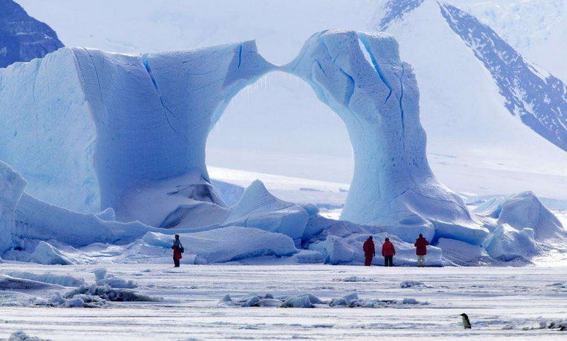 天堂灣是一處美麗的峽灣,三面為巨型冰山環(huán)繞,約有 10,000英尺高的冰河一直由山頂延伸到海邊,氣勢雄偉。這里有阿根廷的研究站,那里棲居著巴布亞企鵝,在天堂灣可攀登一座長年平緩潔白的冰河,也是隆背鯨經(jīng)常出沒之處。