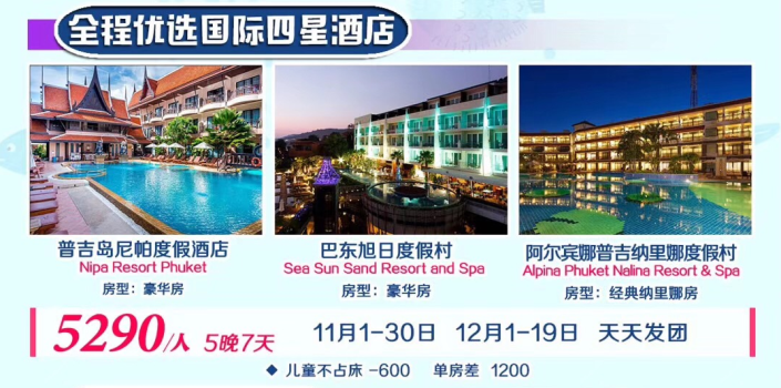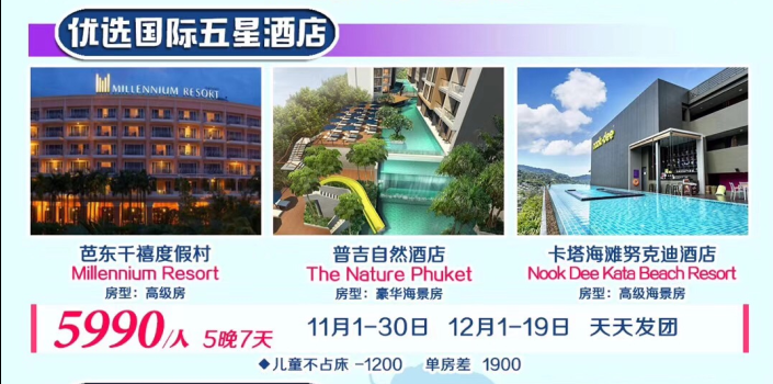 普吉島5晚7天【機票の酒店】