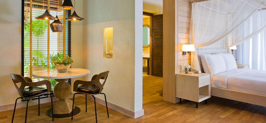 我們的水上的套房和別墅是建立木制人行道,站在淺礁湖之上。每個人都有自己的私人露臺滑入大海。