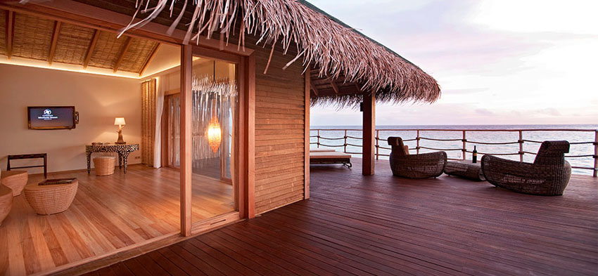 豪華木質(zhì)的優(yōu)雅裝飾,高級水上別墅讓您擁有在天堂之中的無窮享受,它以一個寬闊的日光臺板為特色,這是一覽緩緩落日的理想位置。*多可容納2成人+ 1加床(成人或12歲以下的孩子)。
