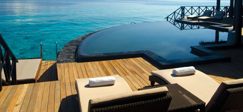 豪華水上棚屋展示了優(yōu)雅和獨(dú)特之傳統(tǒng)味道,時(shí)尚而成熟。樸素而又典雅的設(shè)計(jì),這些棚屋將讓您觀賞到印度洋全景。它擁有兩間臥室、游泳池、桑拿和蒸氣浴室,極可意浴缸、私人餐飲區(qū),寬敞的休閑室還有 40 寸液晶電視和私人大太陽(yáng)床,另有帶來(lái)極致享受的額外配套設(shè)施:Ploh 浴袍、床單和浴巾。