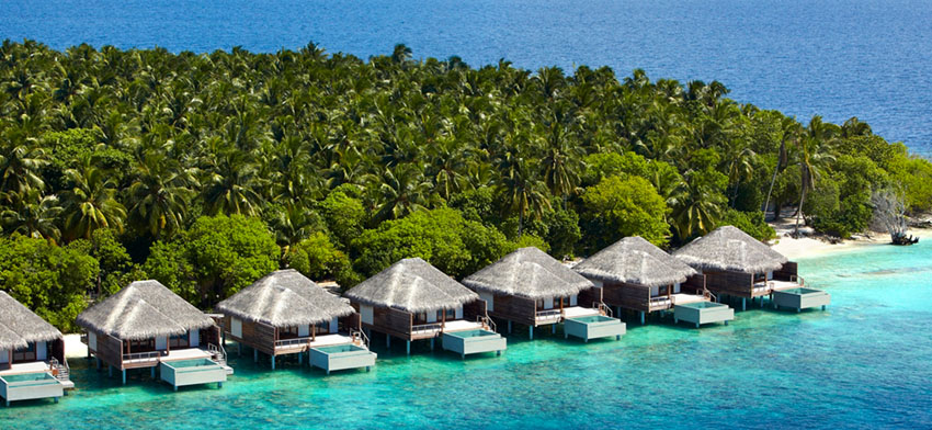 島上由藍(lán)綠色的房屋包圍。交通便利,從dusit thani酒店乘水上飛機(jī)35分鐘到達(dá)首都馬累,再轉(zhuǎn)乘快艇10分鐘到國(guó)內(nèi)機(jī)場(chǎng)。