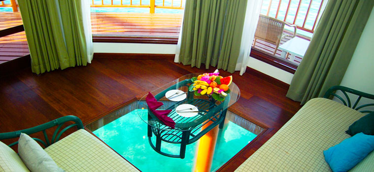 每個(gè)平房都配備了所有現(xiàn)代化的設(shè)施,這樣的設(shè)計(jì)也適應(yīng)現(xiàn)代旅客的需求。所有的平房都裝有空調(diào)和吊扇。他們也有國際直撥電話連接和衛(wèi)星電視??头慷加幸粋€(gè)迷你酒吧??头恳灿杏謱捰写笫孢m的雙人床鋪,有四個(gè)擁有私人按摩浴缸的水上別墅。也是附有淋浴的浴室,并且提供熱水和冷水。人們還可以找到吹風(fēng)機(jī)和很多的洗浴設(shè)施。