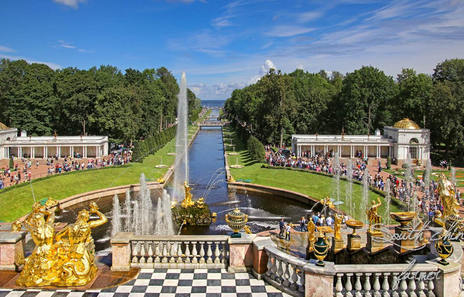 夏宮又稱彼德宮:坐落在芬蘭灣南岸的森林中,它始建于1714年,分為上花園和下花園,大宮殿(宮殿外觀)在上花園。這里的建筑豪華壯麗,被譽(yù)為“俄羅斯的凡爾賽”