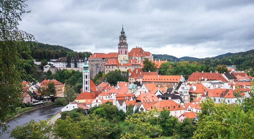 上午:驅(qū)車前往克魯姆洛夫,被寬闊蜿蜒的伏爾塔瓦河環(huán)抱著,在河谷的對(duì)岸以城堡為中心的中世紀(jì)的城市一望無邊,令人驚嘆。小城幸運(yùn)地在五個(gè)多世紀(jì)以來平安地發(fā)展,因此它的建筑遺風(fēng)被原封不動(dòng)地保留了下來而成為歐洲中部中世紀(jì)古城的一個(gè)杰出典范。