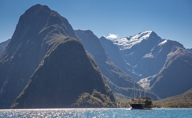 4. 米佛峽灣游船:新西蘭最大的國家公園,世界八大奇景之一,200萬年前的巨大冰川運動,產(chǎn)生深邃的峽谷