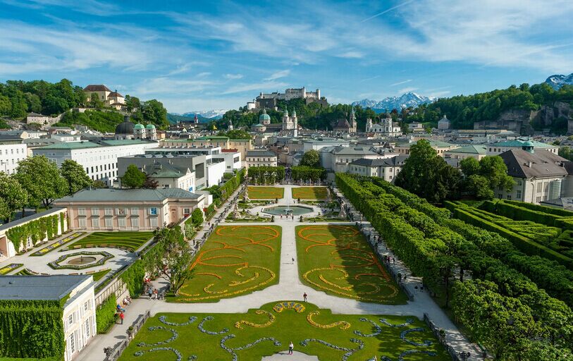 下午: 薩爾茨堡是音樂神童莫扎特的出生地,也是著名影片《音樂之聲》的拍攝地點。抵達后我們游覽建于16世紀、巴洛克式的法式宮殿花園——米拉貝爾花園,觀賞園內(nèi)精美的花卉拼圖,古羅馬藝術(shù)雕塑,充滿韻律的中央噴泉。后前往薩爾茨堡**繁華的糧食街,街道兩旁布滿各色小店,這里的9號樓就是音樂天才莫扎特的誕生地。