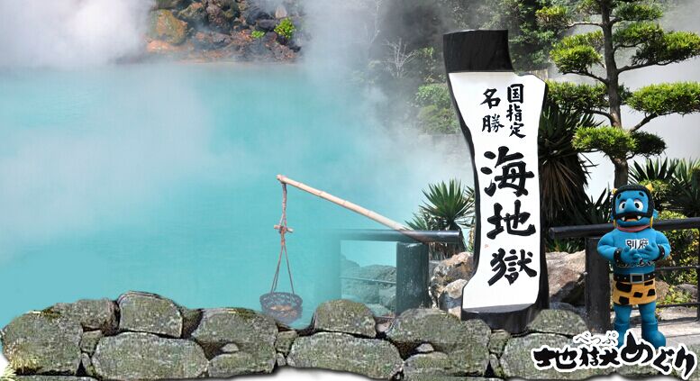 【海地獄】日本人之所以把它稱之為地獄溫泉,指的是火山的噴煙,源源不斷的噴出地面,將它取名為地獄。而海地獄的泉水呈現(xiàn)藍(lán)色,所以稱海地獄。