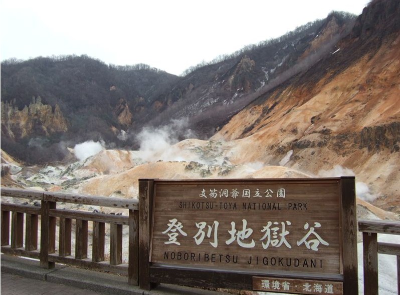 游覽登別地獄谷風景區(qū)(不少于60分鐘)火山爆發(fā)后,由熔巖形成的一個寸草不生的奇形詭異的谷地,灰白和褐色的巖層被從地下不斷冒出的熱氣所圍繞,并常年伴隨著嘶嘶聲,有如地下的魔鬼在呼吸,沿著木棧步道穿梭其外圍,遠觀奇特的火山景象。