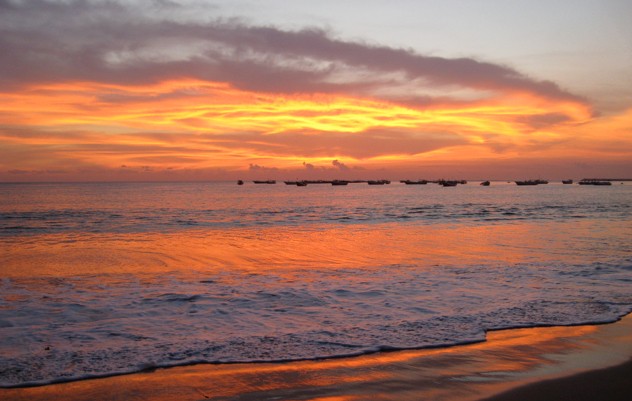 早餐后前往【南灣】,乘玻璃底船前往【海龜島】,如果您感興趣可以參加到南灣精彩的水上活動中去,【洋洋斷崖】,遠眺斷崖,欣賞海天一色的美景,氣勢磅礡;仿佛一幅畫,并享用當?shù)靥厣鞠挛绮琛?。前往【海神廟】(約1小時)海中形似船只的巨巖上,聳立著巴厘島六大寺廟之一,祭拜海之守護神的海神廟,搭配南洋夕照的熱帶夕陽海景,成為巴厘島代表性風景之一。隨后前往【金巴蘭海灘落日】,在海邊享用晚餐,把巴厘島的旅游帶入一個全新的境界。