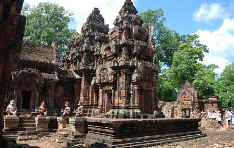 【通王城】又稱大吳哥【巴戎寺】(游覽時間50分鐘)位于通王城中心,共分三層:下兩層為正方形,外側(cè)廊壁有浮雕;頂層為圓形,樹立佛塔。巴戎寺建筑結(jié)構(gòu)復雜,每個塔身上都有四面佛像。這些巨大的佛像為典型高棉人面容,略帶微笑,安詳而神秘,這就是著名的“高棉的微笑”。【十二生肖塔】(游覽時間10分鐘)、【斗象臺】(游覽時間10分鐘)【塔瑪農(nóng)神廟】又稱塔瑪農(nóng)遺址。是一座建筑風格同小吳哥的小型寺廟。雕工精細的塔瑪農(nóng)神廟,小而美,供奉著濕婆和毗濕奴。和女王宮一樣,托瑪儂神廟也有體態(tài)豐滿的麗華塔女神之后參觀木雕店(時間約為60分鐘)