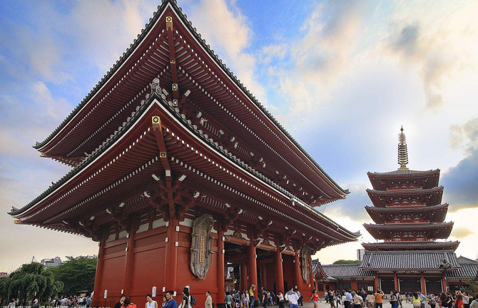 【淺草觀音寺】(停留約20分鐘)為日本觀音寺總堂。淺草寺的歷史很悠久,它的起源據(jù)傳是在1370年前,一對(duì)以捕魚為生的兄弟倆在隅田川中發(fā)現(xiàn)了觀音像,就建了這座寺院供奉起來。現(xiàn)在的淺草觀音寺建筑群是在二戰(zhàn)后重建的,寺院的正門雷門,是通往淺草觀音寺的入口處,門下掛了一個(gè)百斤重,四米高的紅色大燈籠,已成為該寺的標(biāo)志之一。