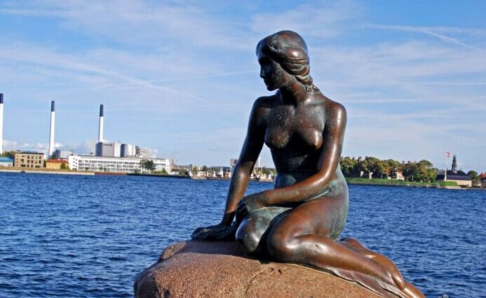 美人魚雕像(拍照留念15分鐘)是哥本哈根的象征,是一座世界聞名的銅像,她位于丹麥哥本哈根市中心東北部的長(zhǎng)堤公園(Langelinie)。遠(yuǎn)望這個(gè)人身魚尾的美人魚,她坐在一塊巨大的花崗石上,恬靜嫻雅,悠閑自得;走近這座銅像,您看到的卻是一個(gè)神情憂郁、冥思苦想的少女。