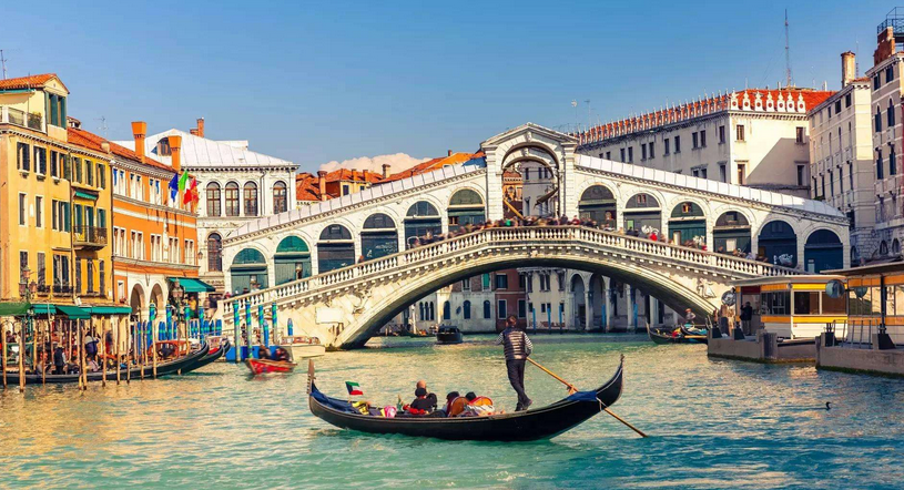 上午:早餐后前往威尼斯,游覽威尼斯本島,乘坐貢多拉游船。這種威尼斯特有的、船頭船尾高高翹起的黑色平底鳳尾小船,帶領(lǐng)我們穿梭于這座聞名于世的水城,這種華麗而迷離的情調(diào),是世界游客永遠(yuǎn)的夢(mèng)。游覽在千萬只飛翔的和平鴿中屹然聳立的圣馬可大教堂(外觀)、圣馬可廣場(chǎng),一直是威尼斯的政治、宗教和傳統(tǒng)節(jié)日的公共活動(dòng)中心。它曾是中世紀(jì)歐洲最大的教堂,是基督教世界最負(fù)盛名的大教堂之一。嘆息橋、它建于1603年,因橋上死囚的嘆息聲而得名,是古代由法院向監(jiān)獄押送死囚的必經(jīng)之路。之后步行前往被成為“白色巨象”的里亞托橋。這里是威尼斯地標(biāo)性建筑,威尼斯3座橫跨大運(yùn)河的橋梁之一。莎士比亞的名劇《威尼斯商人》就是以這里為背景。里亞托橋旁新落成的全球知名奢侈品免稅上次DFS也是不容錯(cuò)過的休憩之地。這里匯集了120多個(gè)以意大利品牌為主的知名品牌,其露天天臺(tái)是俯瞰威尼斯各大著名景點(diǎn)的最佳場(chǎng)所。