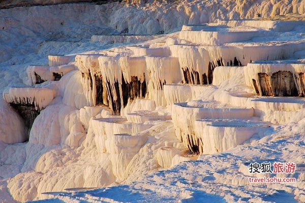 早餐后前往帕姆卡萊(Pamukkale)(行車約2.5小時(shí))參觀土耳其著名度假區(qū),天然奇景的—棉花堡(約1小時(shí))。抵達(dá)后游覽“棉花堡”,它是遠(yuǎn)近聞名的溫泉度假勝地,此地不僅有上千年的天然溫泉,更有這種古怪的好似棉花一樣的山丘。遠(yuǎn)望猶如層層梯田,卻又潔白如雪。大自然的鬼斧神工制造出了如此美妙的仙境。