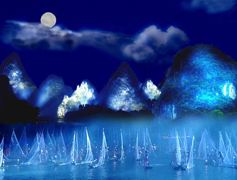 晚上:晚餐后觀看超大型山水實景演出印象·劉三姐】(約70分鐘),它由著名導演張藝謀、樊躍、王潮歌及國家一級編劇梅帥元等人歷時多年精心打造而成,是了世界第一部大型山水實景演出。它將桂林山水和“劉三姐”傳說進行巧妙的嫁接和有機組合,讓自然風光和人文景觀交相輝映,被稱為“與上帝合作之杰作”。