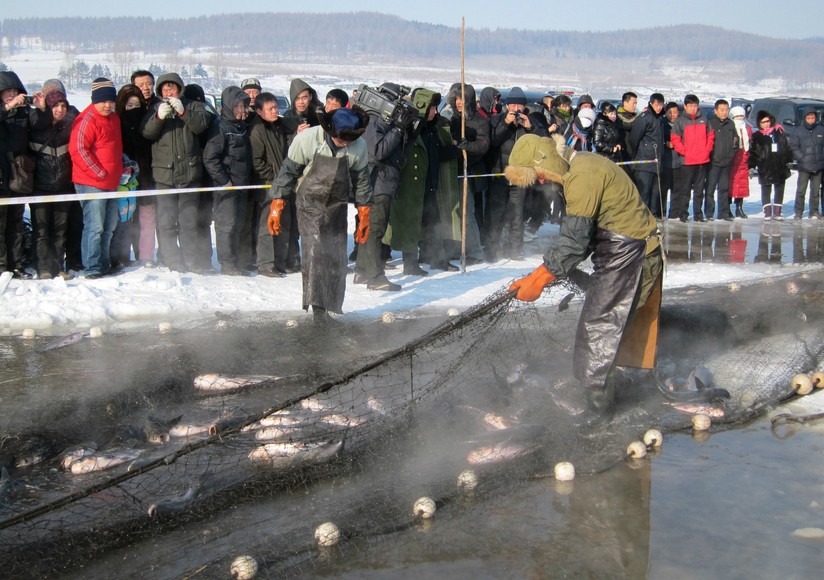 10:00觀看開網(wǎng)捕魚(如遇特殊情況無(wú)法觀看恕不提前通知,贈(zèng)送項(xiàng)目,不參加恕不退費(fèi)),預(yù)示著年年有余。只見千里冰封的湖面上,由漁民鑿開個(gè)冰窟窿,開網(wǎng)捕魚,收獲起沉甸甸的大魚與喜悅。鏡泊湖魚生長(zhǎng)于冷水環(huán)境、生長(zhǎng)周期長(zhǎng),魚肉緊致、口感細(xì)膩、味道鮮美,自古以來(lái)就是進(jìn)貢佳品。