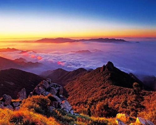 霧靈山國(guó)家森林公園  游覽龍?zhí)毒皡^(qū):金雕崖、羚羊界、天然白樺林、將軍峰、潑墨峰、拇指峰、回音壁、清風(fēng)界、龍?zhí)镀俨肌乜谄俨?、神牛潭,山澗溪水千回萬(wàn)轉(zhuǎn),濤聲震耳。景區(qū)內(nèi)樹木高大,遍布山谷,遮天蔽日,時(shí)有野獸出沒。由于植被茂盛,空氣負(fù)氧離子含量高,相對(duì)濕度大,氣溫舒適,清新涼爽,環(huán)境幽野,辟為“避暑養(yǎng)生游專線”活動(dòng)4小時(shí)。如增加2小時(shí)(換乘景區(qū)內(nèi)小車費(fèi)用需自理)可登主峰極頂海拔2118米,燕山山脈主峰。登高遠(yuǎn)望,一覽眾山小,密云水庫(kù)盡收眼底。游覽歪桃峰景區(qū):霧靈云海、霧靈日出、霧靈佛光、空中花園、七盤井、登高攬勝等。每當(dāng)云霧涌起之時(shí),海拔1800米以下彌漫在云霧之中,云鋪成路,人行在天,如入仙境