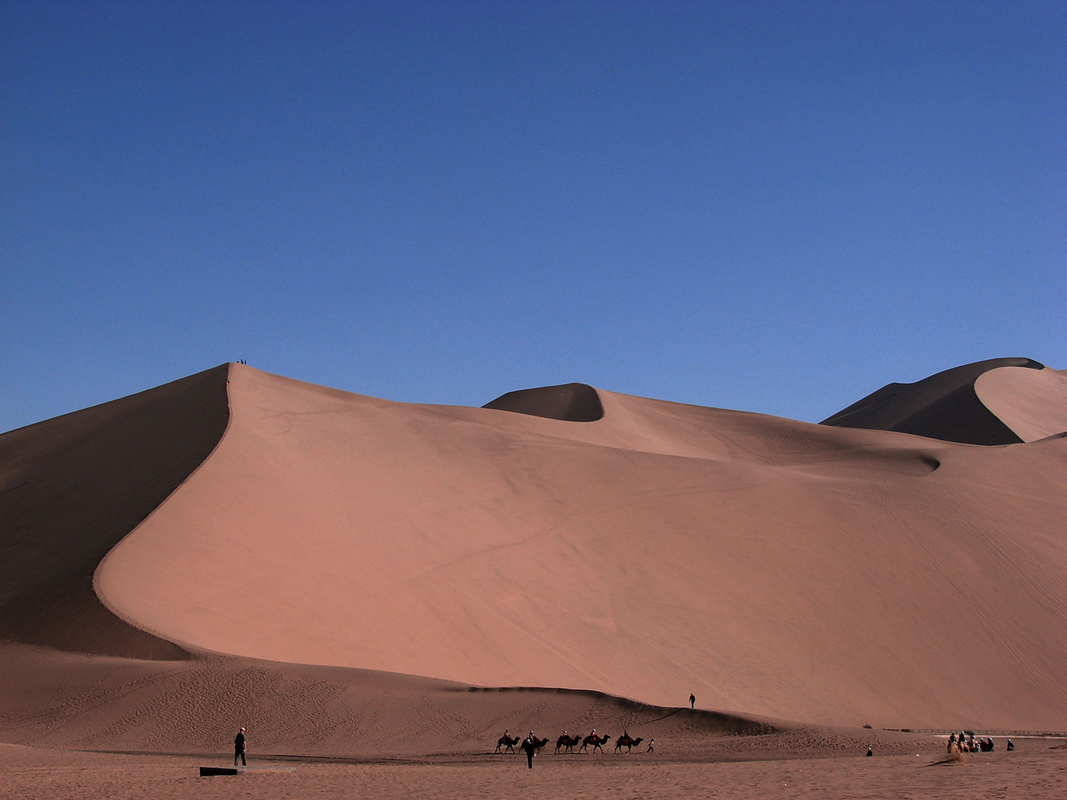 早餐后乘車赴敦煌參觀世界藝術(shù)寶庫(kù),中華石窟之瑰寶---莫高窟。它是我國(guó)規(guī)模**大,內(nèi)容**豐富的石窟群,也是世界藝術(shù)史上的奇跡。又名“千佛洞”, 是現(xiàn)今世界上規(guī)模**宏大、歷史**久長(zhǎng)、內(nèi)容**豐富、保存**良好的佛教遺址,被聯(lián)合國(guó)教科文組織列入世界文化遺產(chǎn)保護(hù)名錄。午餐后游覽以沙漠奇觀著稱的鳴沙山、月牙泉。鳴沙山整個(gè)山體由細(xì)米粒狀黃沙積聚而成,狂風(fēng)起時(shí),沙山會(huì)發(fā)出巨大的響聲,輕風(fēng)吹拂時(shí),又似管弦絲竹,因而得名為鳴沙山。有兩個(gè)奇特之處:人若從山頂下滑,腳下的沙子會(huì)嗚嗚作響;月牙泉因泉形酷似一彎新月,故名月牙泉,晚餐后入住酒店。