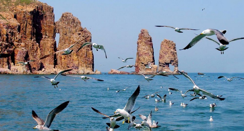早餐后,乘車赴榮成,游覽素有“海鷗王國”之稱的--海驢島(乘船進島上單程航程約20分鐘,島上游覽約2小時)海驢島每逢春季,成千上萬的海鷗來此棲息產(chǎn)卵,巖縫中鳥巢鱗次櫛比,數(shù)不勝數(shù),島上威峰兀立,四周海水浩瀚碧藍,與成千上萬只海鷗構(gòu)成的雄偉景觀,不僅令人嘆為觀止,神凝形釋,故海驢島有“海鷗王國”之雅號。海驢島相傳為二郎神當年用扁單挑著一只雞和驢過海時,因天將破曉,雞鳴驢嚎,不慎將雞和驢落入海中而化為雞鳴島和海驢島。海驢島是鳥的世界,登上海驢島,只見島上海鷗遍地。眾多的海鷗“咕咕”地叫著,像是歡迎我們游人的到來。由于島上尚無居民,也沒有其它天敵,故海鷗之繁衍越演越烈。有時一大群海鷗同時棲息在一塊巖礁上,必乎覆蓋了整個巖礁,遠遠望去,宛若一塊潔白的冰山呢……