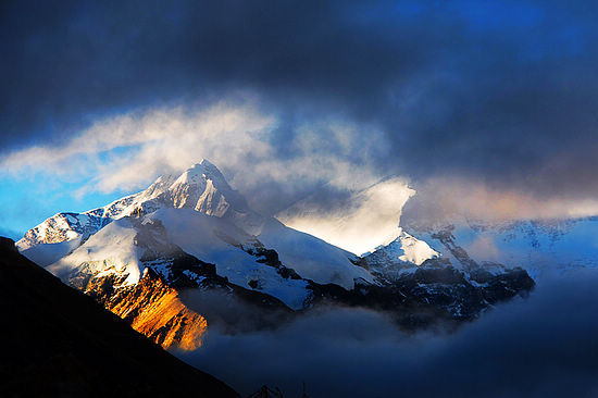 乘車385公里約10小時(shí)至珠峰大本營(yíng),經(jīng)拉孜至定日。拉孜,藏語為“光明*先照耀的金色峰頂”,是藏刀的原產(chǎn)地,可以買到*好的藏刀。稍做停留后趕往定日,中午在定日用餐,出發(fā)5公里處到達(dá)魯魯邊檢站,檢查邊防證和身份證,然后翻越達(dá)遮古拉山口,從這里可以看到4座8000米以上的雪山,依次為:珠穆朗瑪峰(海拔8844.43米),馬卡魯峰(8463米),洛子峰(8516米),藏語為“青色美貌的仙女”,卓奧友峰(8201米),藏語為“首席尊師”。從這里出發(fā)經(jīng)過峽谷、懸崖與怪石到珠穆朗瑪峰大本營(yíng),步行需2小時(shí),坐車只要15分鐘。看珠穆朗瑪峰*好是一大清早或傍晚時(shí)分,此時(shí)景色*是宜人