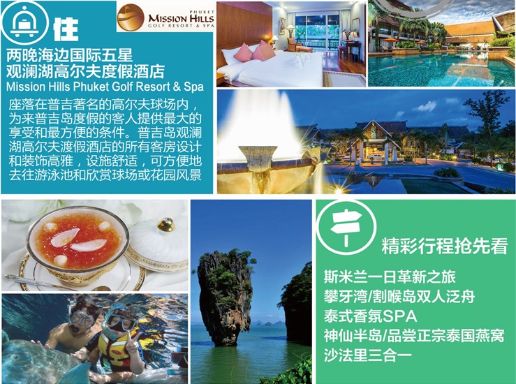 普吉島、斯米蘭、新加坡4晚6天**2晚國(guó)際5星の2晚觀瀾湖高爾夫酒店**
