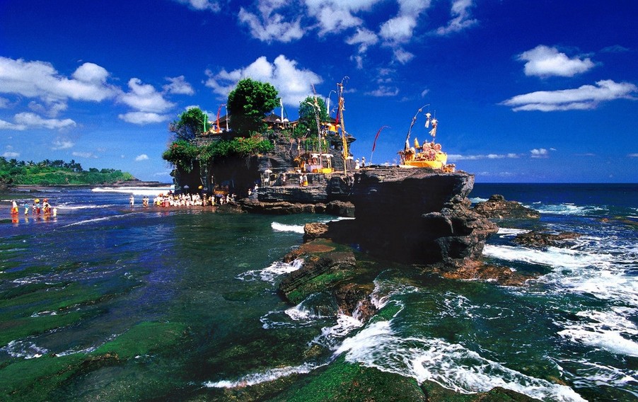 前往巴厘島**著名的【海神廟】(車程約70分鐘,游玩約60分鐘)蓋在海邊的一塊巨巖上是巴厘島——**著名的寺廟之一;該建筑是巴厘島居民的宗教崇拜的圣地,每當(dāng)漲潮時海水會淹沒巖礁,巖石被海水包圍,整座寺廟與陸地隔絕,孤零零地矗立在海水中;只在落潮時才與陸地相連。
