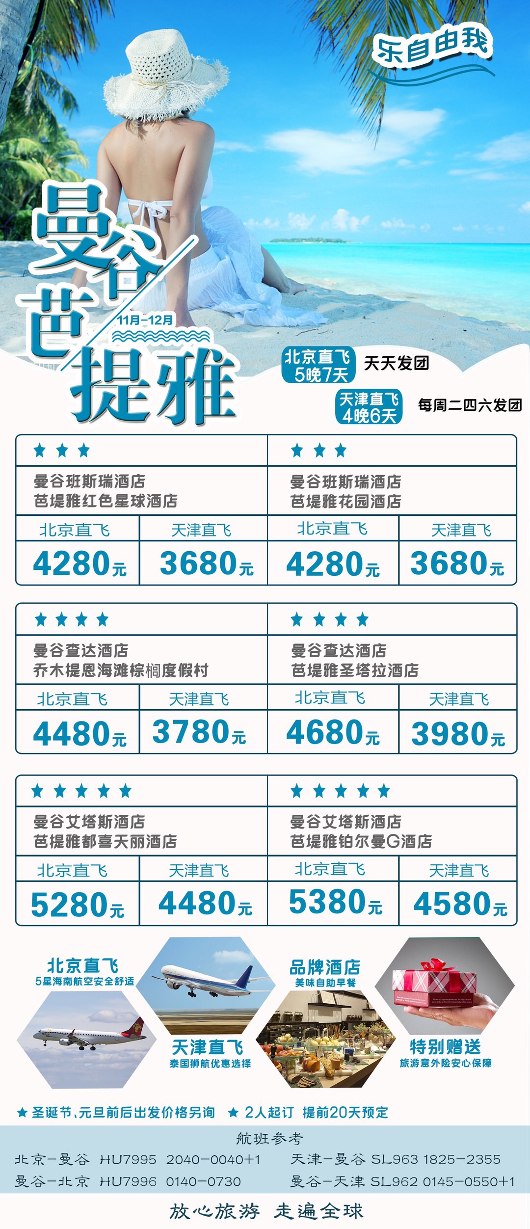 機票:北京/天津--曼谷--北京/天津折扣機票