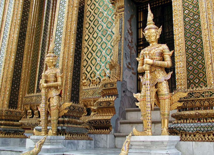 我們乘車前往泰國的標(biāo)志【大皇宮】由拉瑪一世于公元1782年所建,占地約一平方英里?;蕦m內(nèi)盡是華麗壯觀的建筑物,在陽光的照射下,呈現(xiàn)出耀眼金黃色,非常漂亮!【玉佛寺】寺內(nèi)安置著一尊綠色玉佛,正殿大廳便供奉著這尊著名玉佛。寺內(nèi)走廊四周以印度古典文學(xué)為題材的彩色連環(huán)漫畫,共178幅,工程非常浩大,呈現(xiàn)出的畫面令人震撼!午餐后,后前往 【五世皇柚木行宮】周一不開放,此建筑全是以金黃柚木所建造,宮內(nèi)展示古式王室所珍藏金銀珠寶及古董,價(jià)值連城令您大開眼界。晚餐后欣賞【金東尼人妖歌舞表演】。