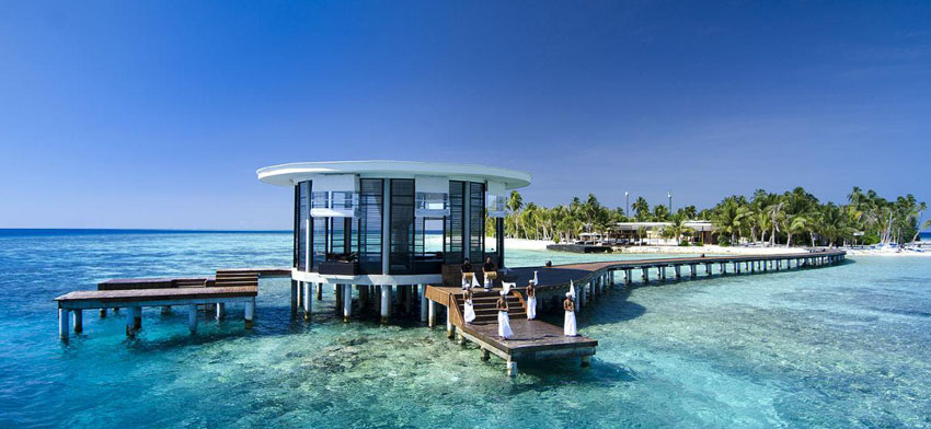 特色:海洋活力空間直接修建在水面之上,私人露臺直接伸向海洋。設(shè)有戶外大理石圓形浴缸,可觀賞海景。