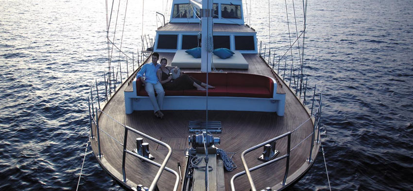 乘坐本度假酒店的"地平線"豪華游艇,迎著晚霞出海攬勝
