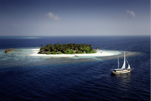 島嶼位于馬爾代夫北阿里環(huán)礁,從馬累乘坐水上飛機(jī)25分鐘即可到達(dá)島上。