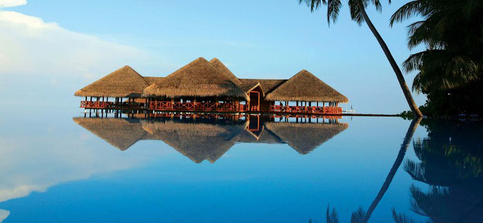 Medhufushi擁有細(xì)白如雪的沙灘,寬廣晶亮的白沙,完整地將整個島環(huán)抱起來,更為她的美麗加分。島上的建筑物,為馬爾地夫式的傳統(tǒng)木造建筑,挑高的屋頂,配合風(fēng)扇,為這個接近赤道的小島營造出純?nèi)坏那鍥?。日落時(shí)分,可以信步到美麗的泳池畔,慵懶地持著沁涼的果汁,體驗(yàn)horizontal swimming pool所締造出水天相連的絕美日落。