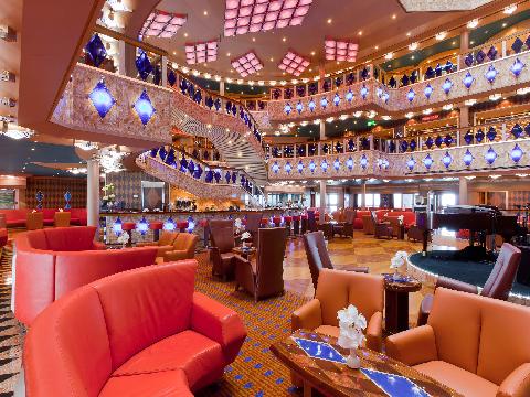 今日迎來全天的海上巡游。遍布全船的各類型酒吧是您休閑娛樂的好去處。您還可以到船上的購物中心享受購物的樂趣。F1模擬賽車場(chǎng)可以讓你體驗(yàn)風(fēng)馳電掣的快感。在浴療中心里,您還可以享受難得的放松。