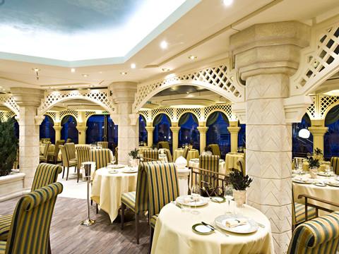 4、多元文化的餐飲 — 郵輪上每天都會由意大利的大廚安排五頓餐飲,從法國餐廳到墨西哥餐廳,從日本的壽司到意大利的披薩,應(yīng)有盡有。岸上觀光行程安排當?shù)靥厣秃椭胁?,讓客人體會全世界的美食。