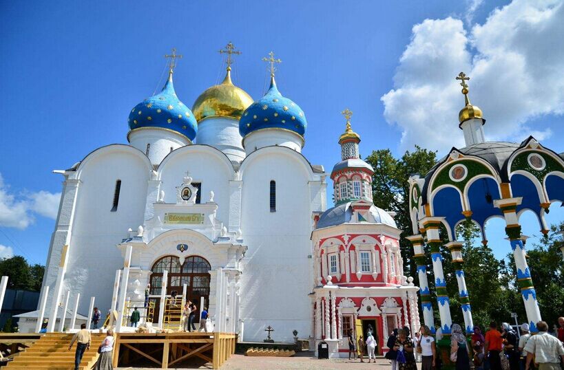 謝爾蓋圣三一修道院:亦譯特羅伊察修道院,1337年一個名叫謝爾蓋?拉多涅日斯基的僧侶在莫斯科近郊謝爾蓋耶夫(即今扎戈爾斯克)的偏僻森林里建立一座三圣小教堂和小道房,為該修道院的前身。后來凡愿在此出家的人,必須自造小道房并自辟膳食用地,由此發(fā)展而成為俄羅斯*富有的大修道院。距今已有近七百年的歷史,是俄羅斯*古老的大修道院之一。整個修道院的建筑群色彩斑斕、美輪美奐,宛如進(jìn)入美麗的童話世界。