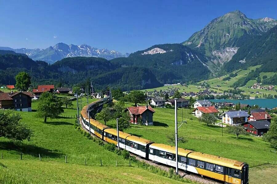 酒店早餐后,前往琉森火車站,乘坐瑞士知名的★金色山口列車。兩種語言、三個世界、六個湖泊、一條線路:這就是金色山口線路。在金色山口快車上坡時能捕捉到葡萄園和花園,漸行漸遠的列車,回眸再看一次日內(nèi)瓦湖、隧道........金色山口快車是將日內(nèi)瓦湖、圖恩湖、布里恩茨湖和琉森湖等瑞士風(fēng)光*美的湖泊連接在一起的引人入勝的線路。