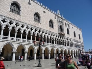 14:00  乘船到威尼斯本島,抵達(dá)后簡(jiǎn)單參觀揉合拜占庭、哥德、東方風(fēng)格為設(shè)計(jì)主調(diào)的圣馬可教堂,以及威尼斯共和國(guó)總督的居所道奇宮(外觀)-*初是在九世紀(jì)時(shí)花費(fèi)巨資所建立的,代表當(dāng)時(shí)威尼斯共和國(guó)的財(cái)富與權(quán)勢(shì)。而現(xiàn)在所看到的王宮建筑,有許多的圓柱、雕刻、回廊等,是在十四世紀(jì)時(shí)所改建的,象征著威尼斯共和國(guó)的富裕與穩(wěn)定。嘆息橋-在威尼斯運(yùn)河水道上有幾條橋,而此條嘆息橋是密封式拱橋建筑,由內(nèi)向外望只能通過(guò)橋上的小窗子。嘆息橋的兩端連接法院與監(jiān)獄兩處,死囚通過(guò)此橋之時(shí),常是行刑前的一刻,因感嘆即將結(jié)束的人生而得名。隨后在有『歐洲會(huì)客廳』之稱(chēng)的圣馬可廣場(chǎng)自由活動(dòng)約1小時(shí):廣場(chǎng)上的磚造鐘樓是威尼斯的地標(biāo),其面海處則立有二根高聳入天的石柱,分別雄踞著威尼斯的守護(hù)神-『圣馬可翼獅』及『圣者托達(dá)洛』,一如威尼斯的門(mén)神。