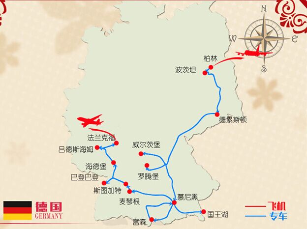 下午:前往【法蘭克?!康诌_后城市觀光:羅馬貝格廣場是法蘭克?,F(xiàn)代化市容中心,唯一仍保留著中古街道面貌的廣場。廣場旁邊的建筑物有舊市政廳,其階梯狀的人字形屋頂,別具特色。羅馬廣場西側(cè)的三個山形墻的建筑物,可以說是法蘭克福的象征,羅馬廣場東側(cè)的哥特式建筑是法蘭克福大教堂,是德國皇帝加冕的教堂。外觀著名的歌德故居。之后您可以在羅馬貝格廣場附近享受自行安排活動的時間,充分感受這座德國金融之城的魅力。晚餐后入住酒店休息。