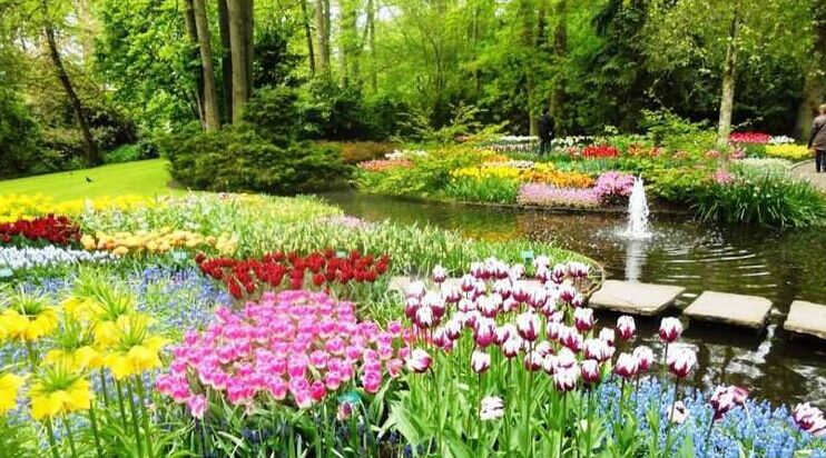 13:00前往以花展聞名的小鎮(zhèn),麗絲騎行{賞花,取過自行車后沿著盛開的花田一邊騎行一邊拍照,來一場(chǎng)別開生面的賞花之旅,景色令人陶醉;之后游覽庫肯霍夫花園{觀賞一年一度的花展,園區(qū)百花爭(zhēng)艷,處處艷麗,美景令人留連忘返。