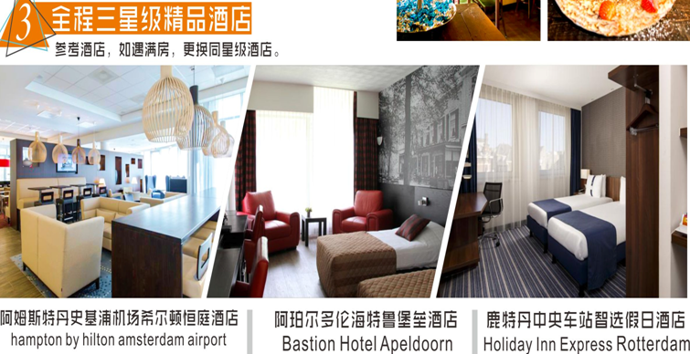 搭乘瑞士航空公司客機(jī)(蘇伊士轉(zhuǎn)機(jī)),一價(jià)全含、不推自費(fèi)、不收取小費(fèi)!入住全程三星酒店,兩年內(nèi)豪華大巴,荷蘭旅游局贈(zèng)送的小禮物