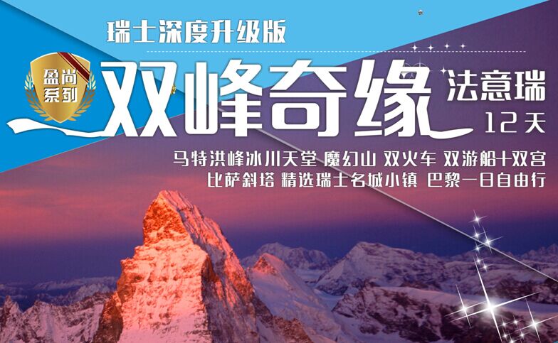 行程特色  雙雪山(瑞士標(biāo)志馬特洪峰、達(dá)沃斯魔幻山);雙游船(巴黎塞納河游船、貢多拉游船);雙古堡小鎮(zhèn)(西庸城堡、“歐洲好萊塢”楚格);雙宮含講解(巴黎盧浮宮、法國(guó)凡爾賽宮);三大度假勝地(滑雪勝地達(dá)沃斯、冰城采爾馬特、蜜月之都琉森);世界遺產(chǎn)名城(羅馬、佛羅倫薩、比薩、威尼斯)