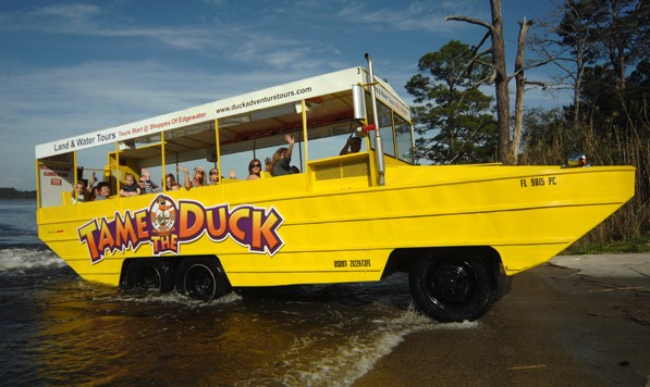 【兩棲大黃鴨】(約90分鐘)不需要離開座位,您就可以欣賞美麗的水上、陸地風(fēng)光。兩棲車先在黃金海岸*繁華的街道在是市區(qū)行駛一圈,然后由專用碼頭緩緩下水,游覽車幾秒鐘內(nèi)變身成了游覽船,漂亮的導(dǎo)游小姐介紹著河兩岸的風(fēng)景和豪宅,進(jìn)入船只不多的水域。
